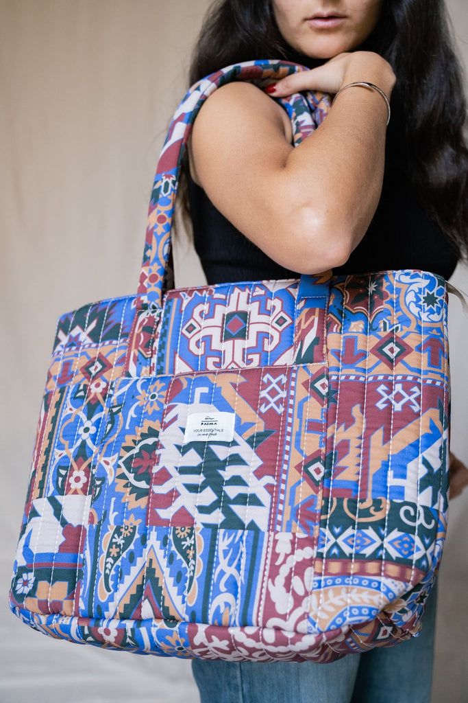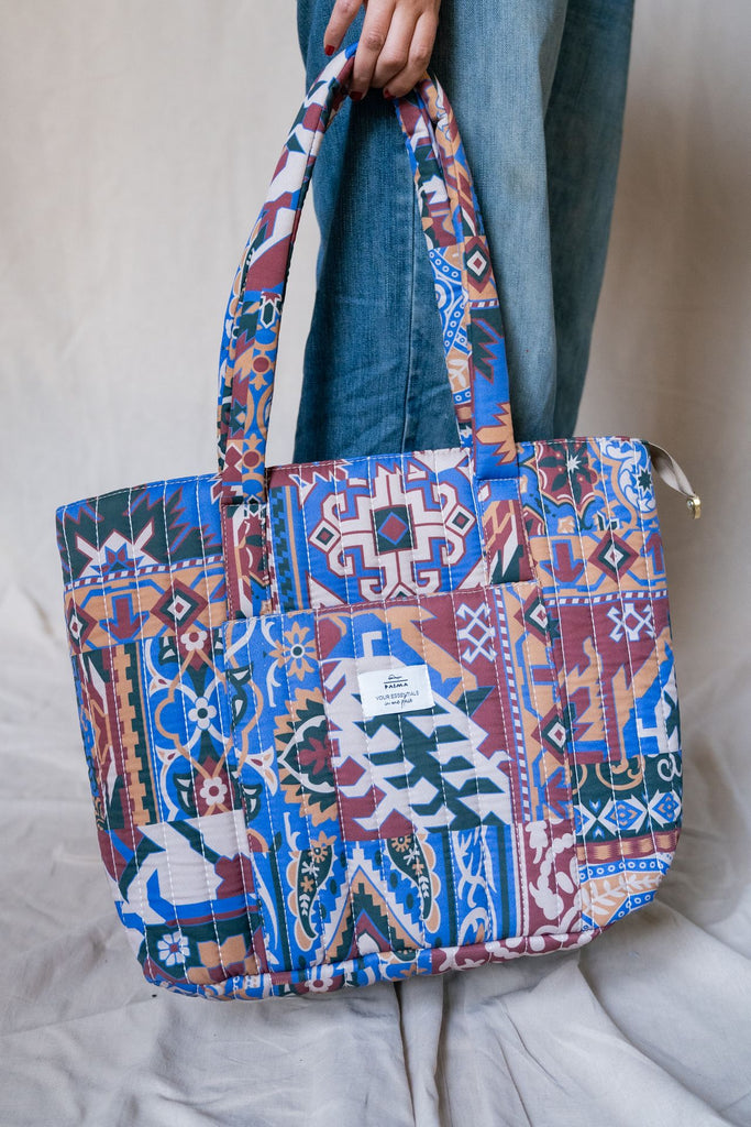 ارتقِ بأسلوبك اليومي مع حقيبة الحمل المطبوعة المبطنة هذه. مصنوعة من نسيج مبطن متين وناعم. واسعة بما يكفي لجميع أغراضك الأساسية وتتميز بمقابض مريحة، وهي مثالية للمهمات أو العمل أو مغامرات عطلة نهاية الأسبوع.