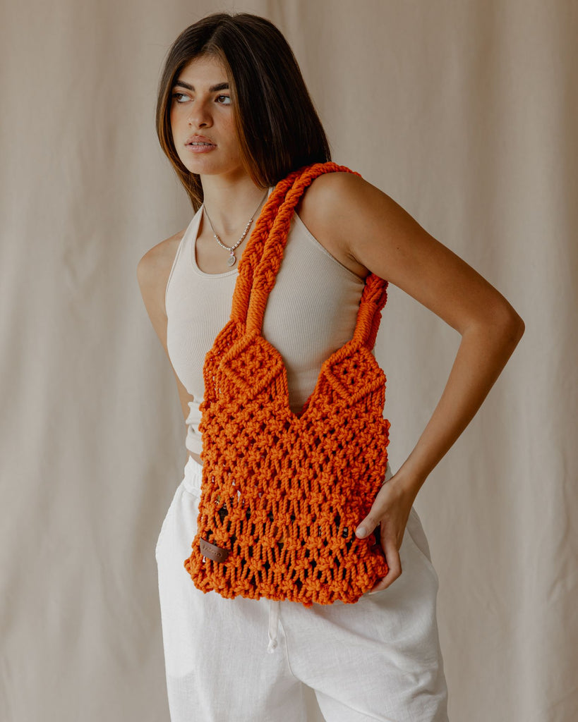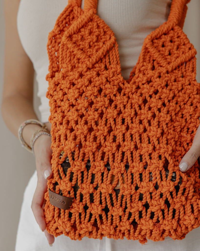 حقيبة كروشيه يومية باللون البرتقالي