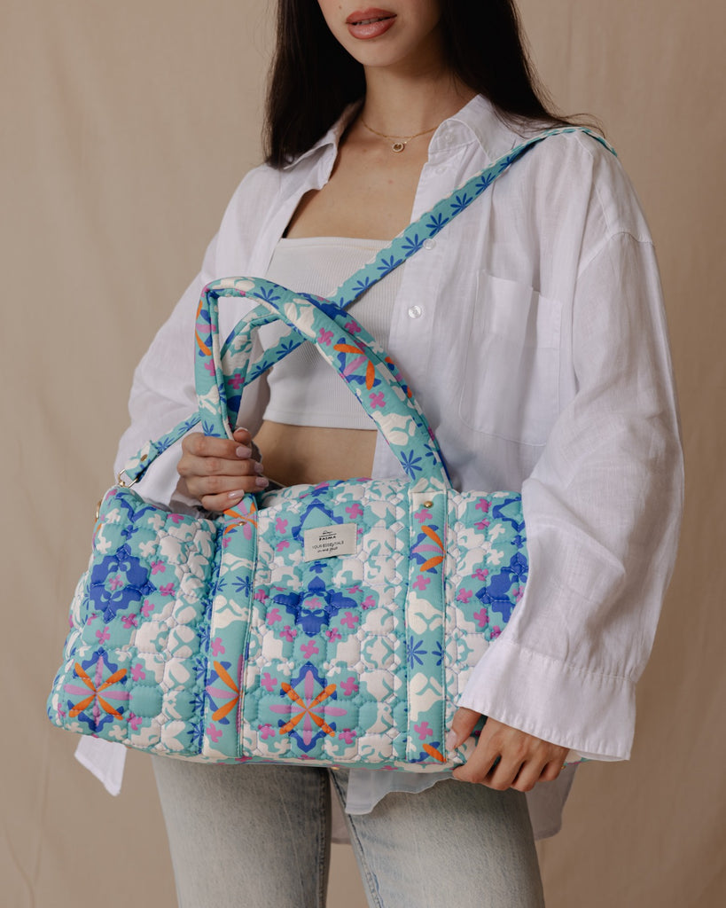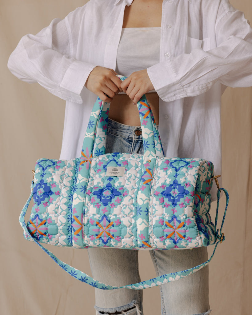 سافر بأناقة مع حقيبة الدفل المبطنة الخاصة بنا! بتصميماتها الرائعة وجزءها الخارجي المبطن، تعد هذه الحقيبة مثالية لأي مغامرة. متوفرة بأربعة ألوان، وهي الإكسسوار المثالي لقضاء عطلة نهاية الأسبوع أو الذهاب إلى صالة الألعاب الرياضية. استعد لجذب الأنظار بحقيبتنا الفريدة والأنيقة.