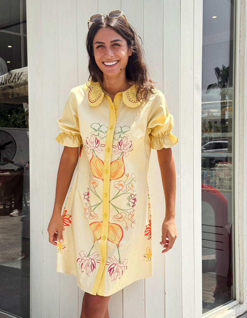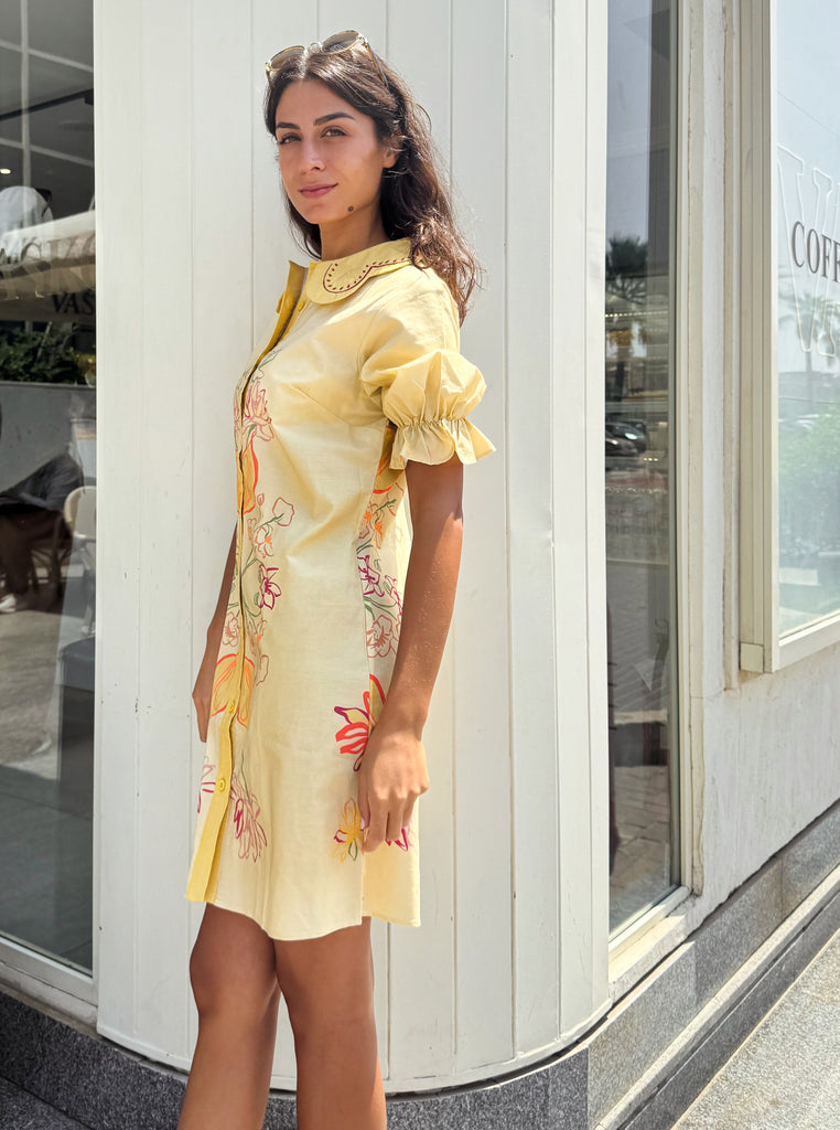 فستان زهرة الحوذان العنبر