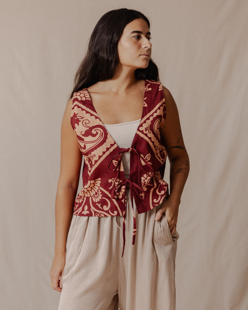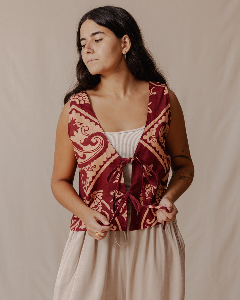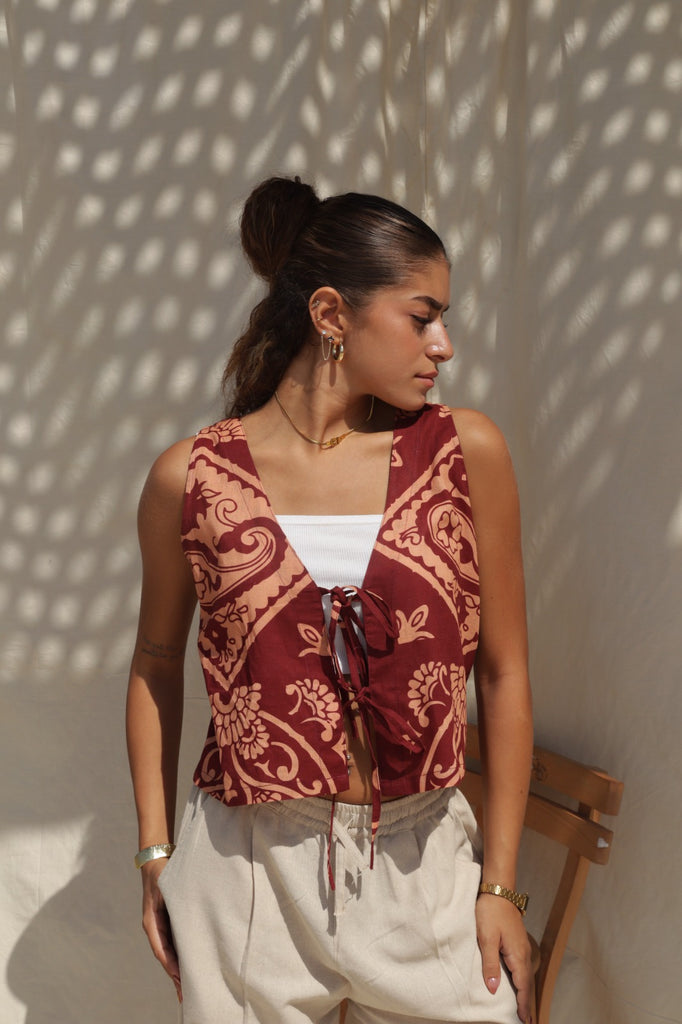 تضيف سترة الكتان المطبوعة لمسة خفيفة ومنعشة إلى أسلوبك. تمنحها تفاصيل الشريط لمسة مرحة وأنثوية، مما يجعلها مثالية للارتداء فوق الملابس غير الرسمية.