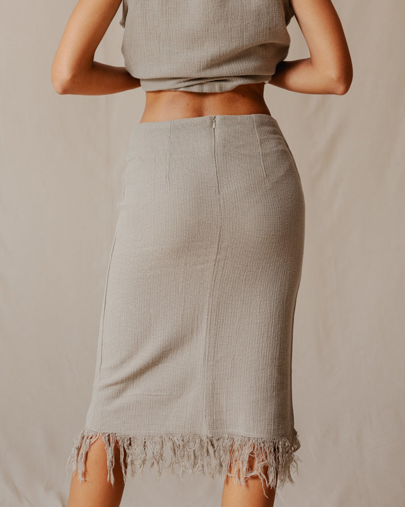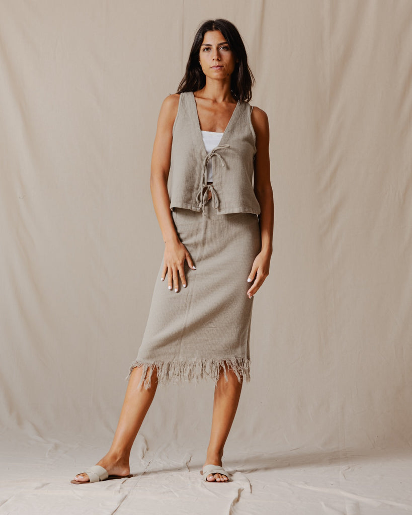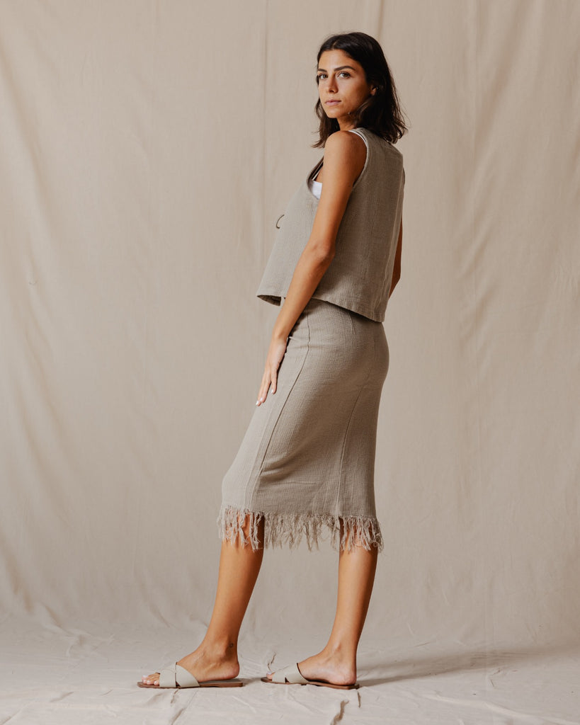 تنورة بوهو ذات هامش باللون الزيتوني