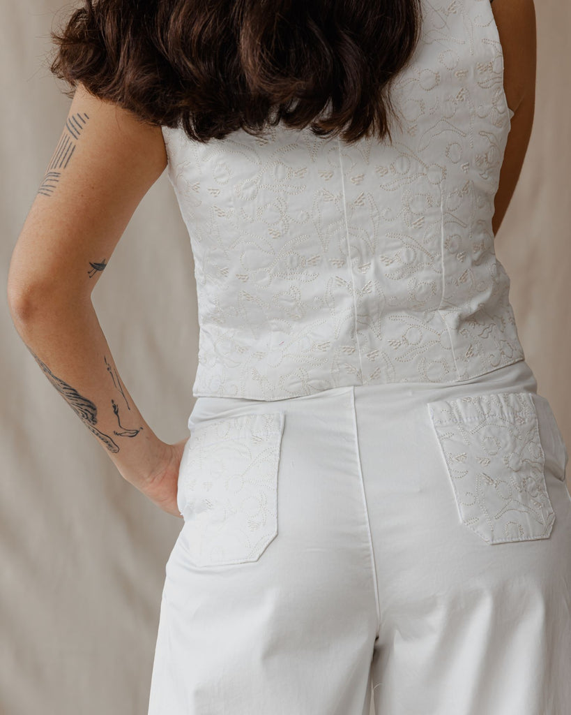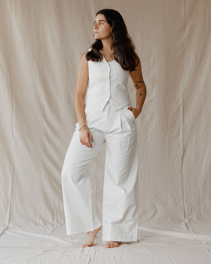 طقم الجبردين هذا، المكون من سترة أنيقة وبنطال مُفصّل، يمنحكِ إطلالة أنيقة وكلاسيكية. يُضفي التطريز الرقيق لمسةً ساحرة، مما يجعله مثاليًا للنهار أو الليل. ارتديهما معًا لإطلالة مميزة، أو امزجيهما معًا لإطلالة كاجوال.