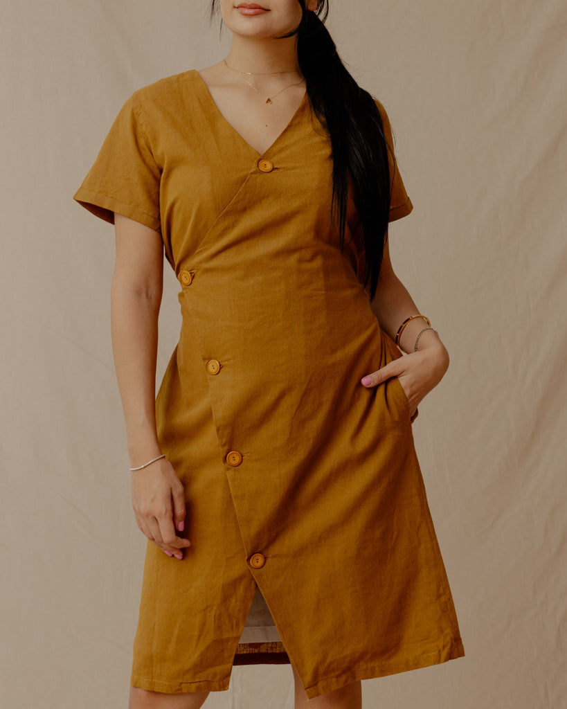 حافظي على انتعاشك وراحتك في فساتيننا الكتانية البسيطة المثالية للطقس الدافئ. مصنوعة من قماش الكتان خفيف الوزن وجيد التهوية، فساتيننا مثالية لأي مناسبة، من يوم على الشاطئ إلى ليلة في الخارج. تأتي في 6 ألوان لتناسب أي ذوق في الموضة وأي نوع من الجسم.