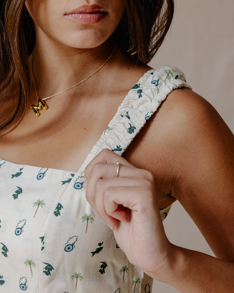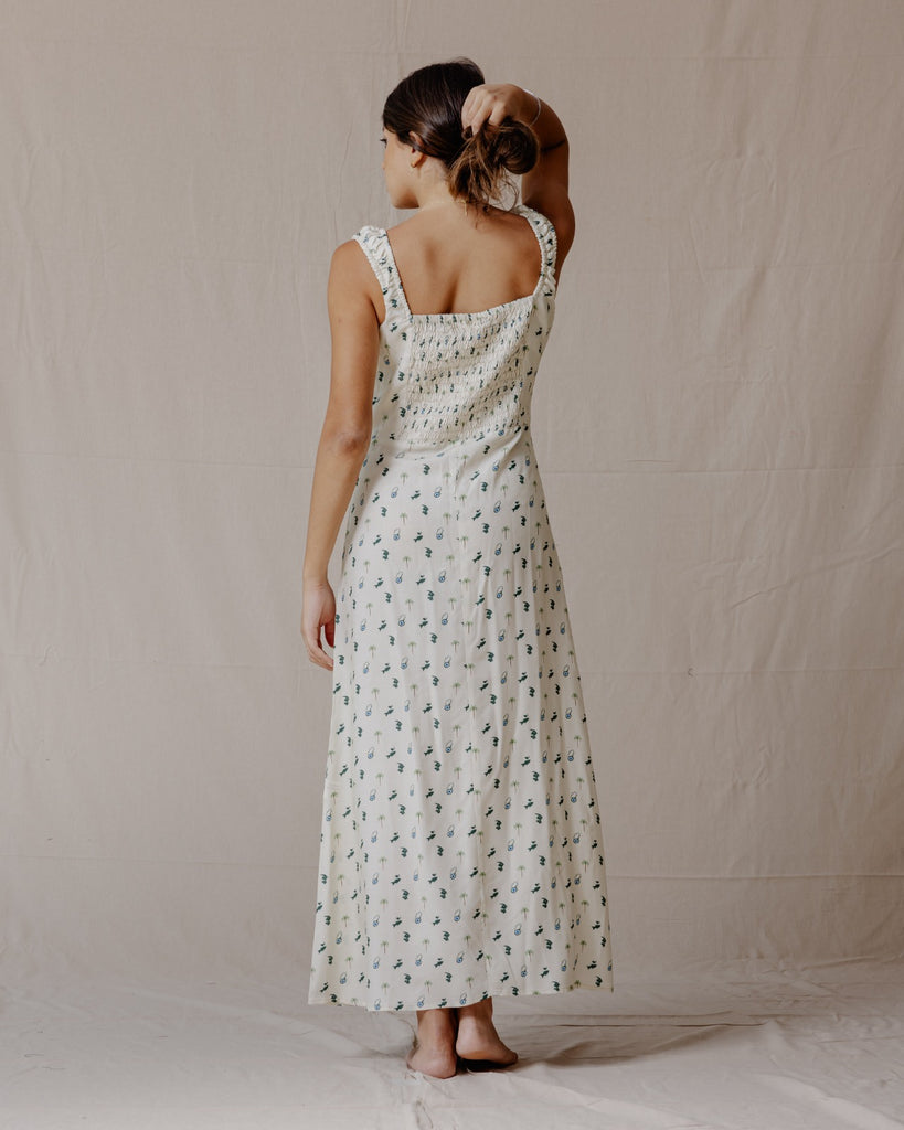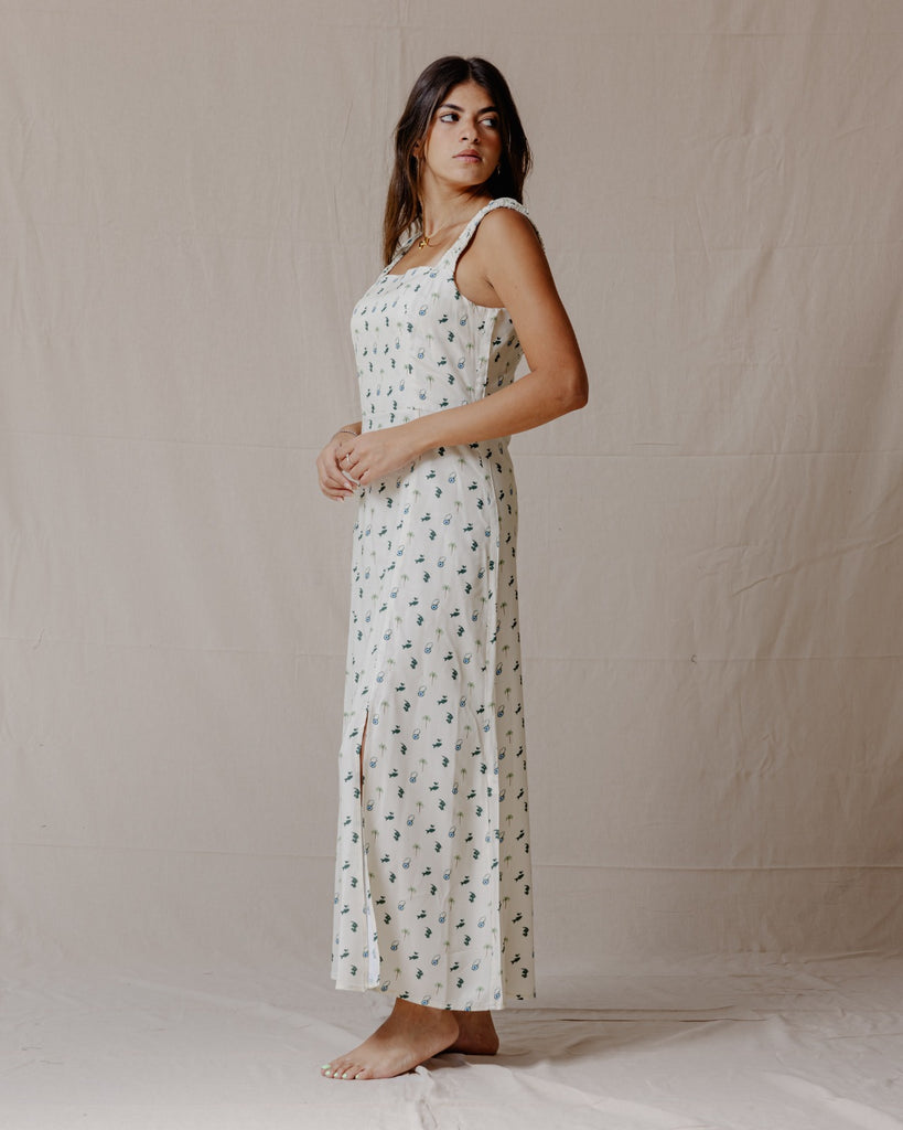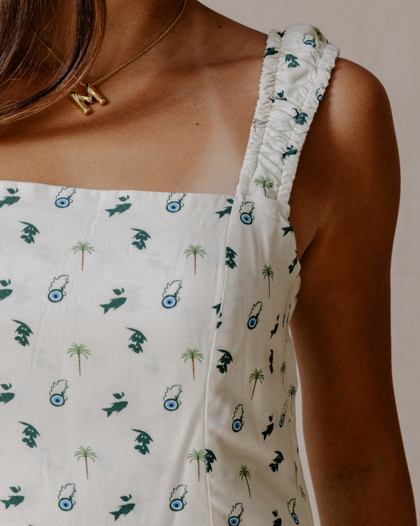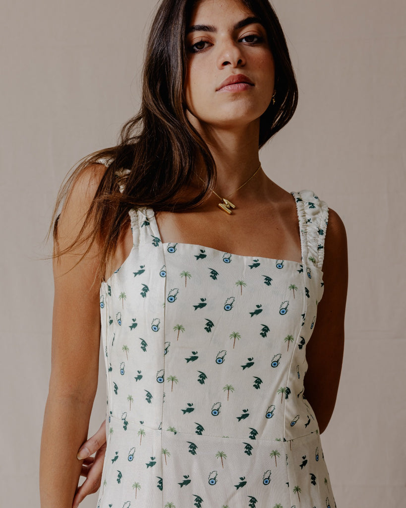 تعرفي على فستاننا الطويل Tropical Nazar Palm - مريح وأنيق ومثالي لقضاء عطلات نهاية الأسبوع المريحة أو الخروجات على الشاطئ، هذا الفستان ذو الرقبة المربعة والشق الجانبي هو خيارك المفضل.