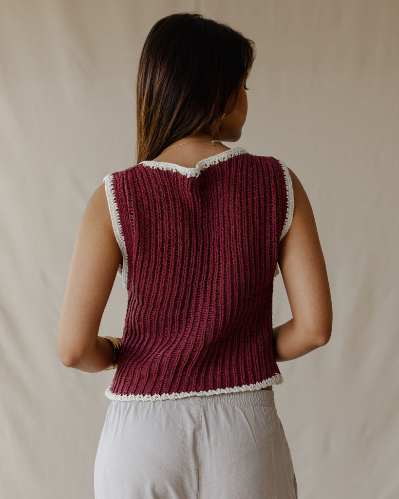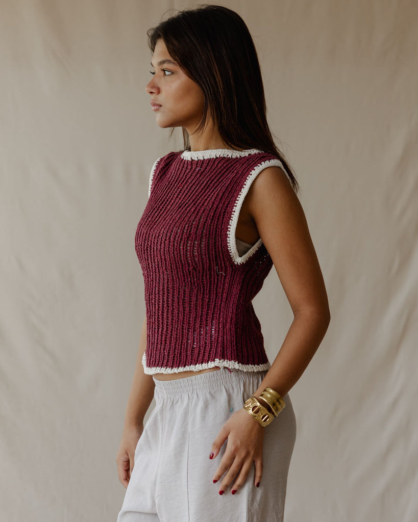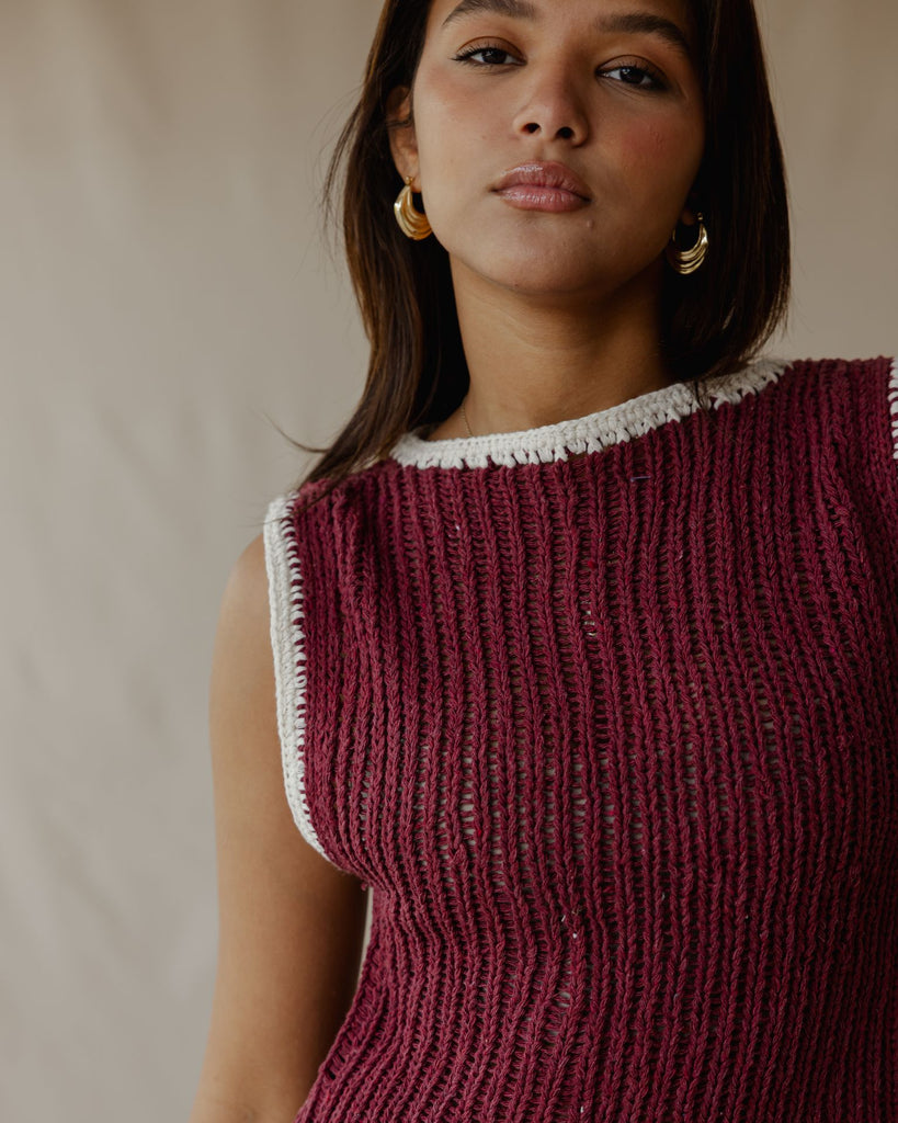 بلوزة كروشيه متباينة اللون بورجوندي