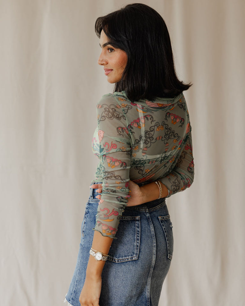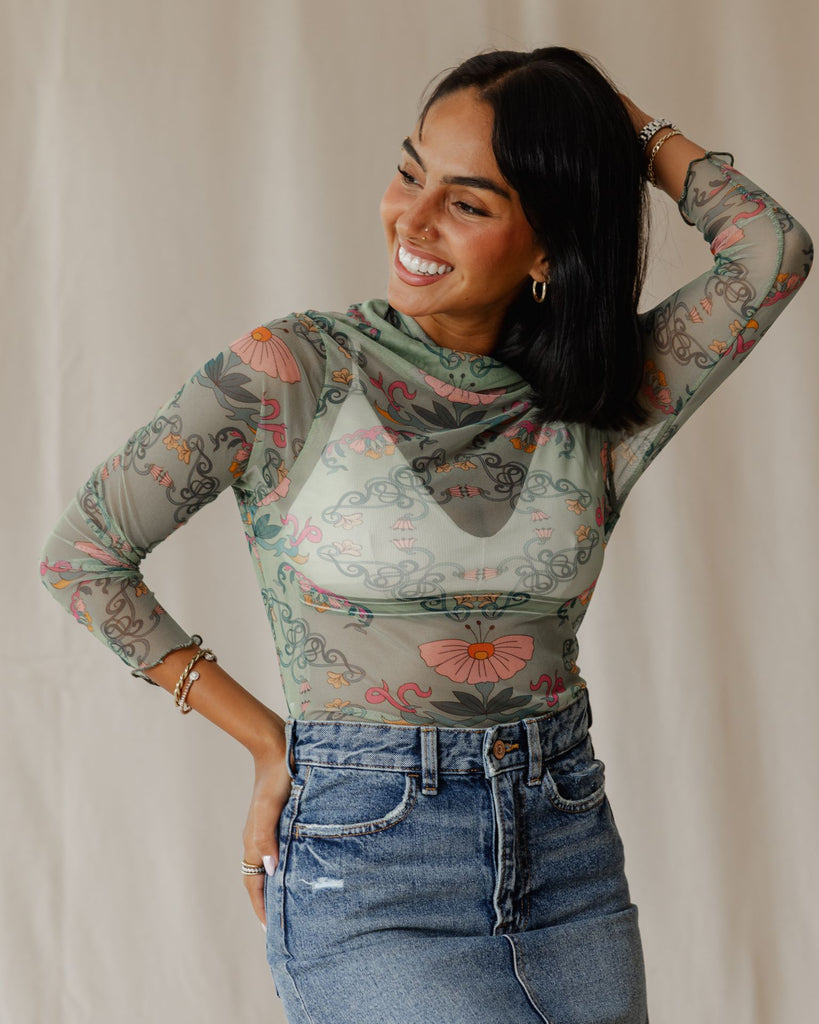 استعدي للتألق بهذا القميص الشبكي المطبوع. بفضل خامته خفيفة الوزن وتصميمه النابض بالحياة، فهو مثالي لإضافة لمسة إلى أي مظهر.