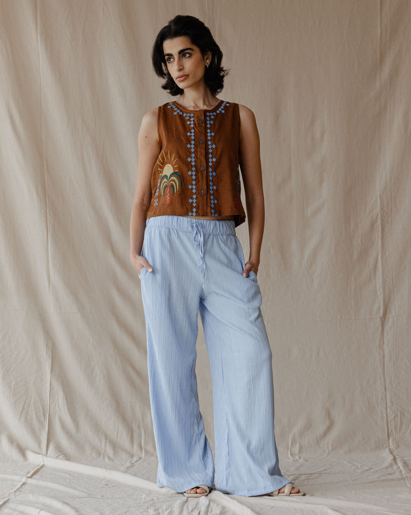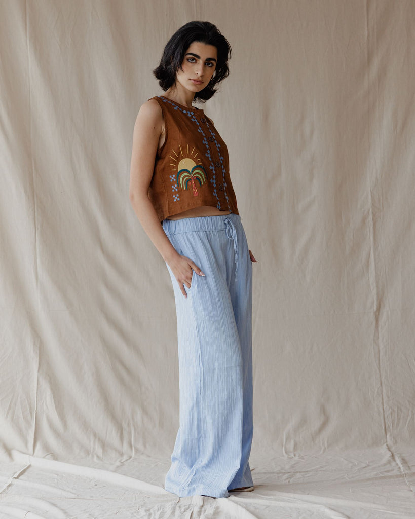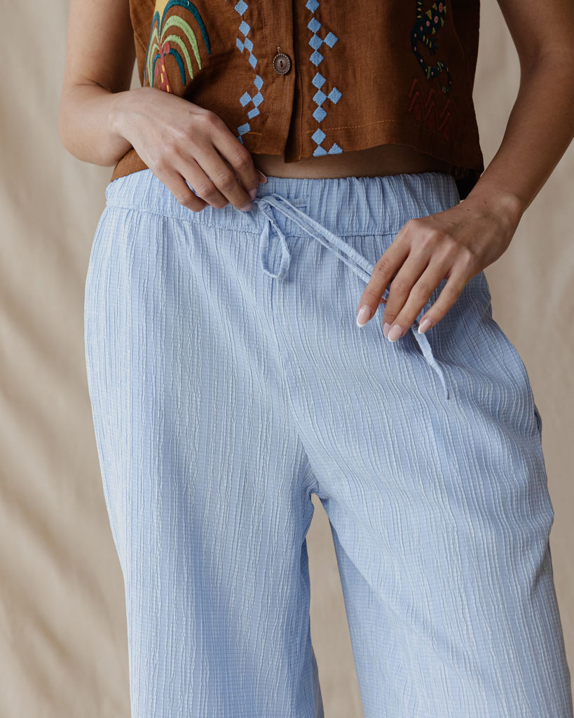 بنطال قطني سهل الارتداء، مريح وبسيط، مثالي لراحة يومية. بقصته المريحة وملمسه المريح، فهو مثالي للاسترخاء أو الخروج بأسلوب مريح.