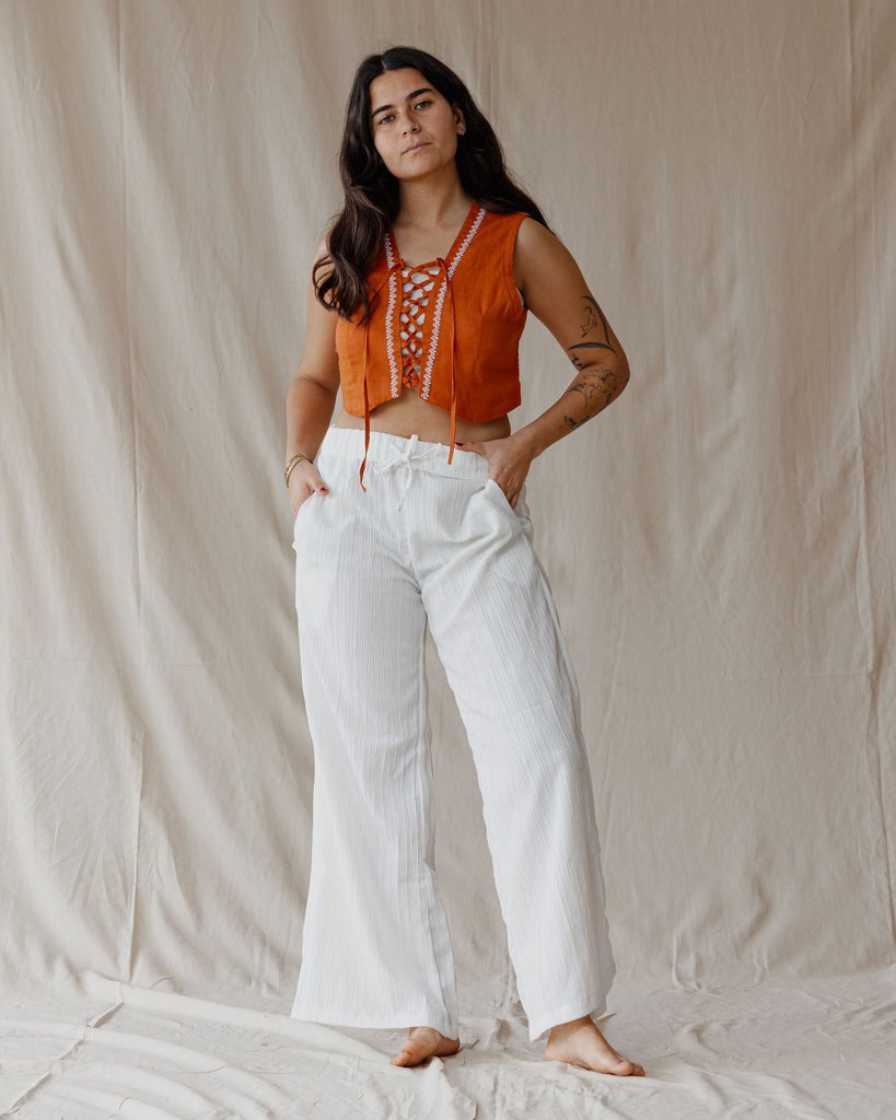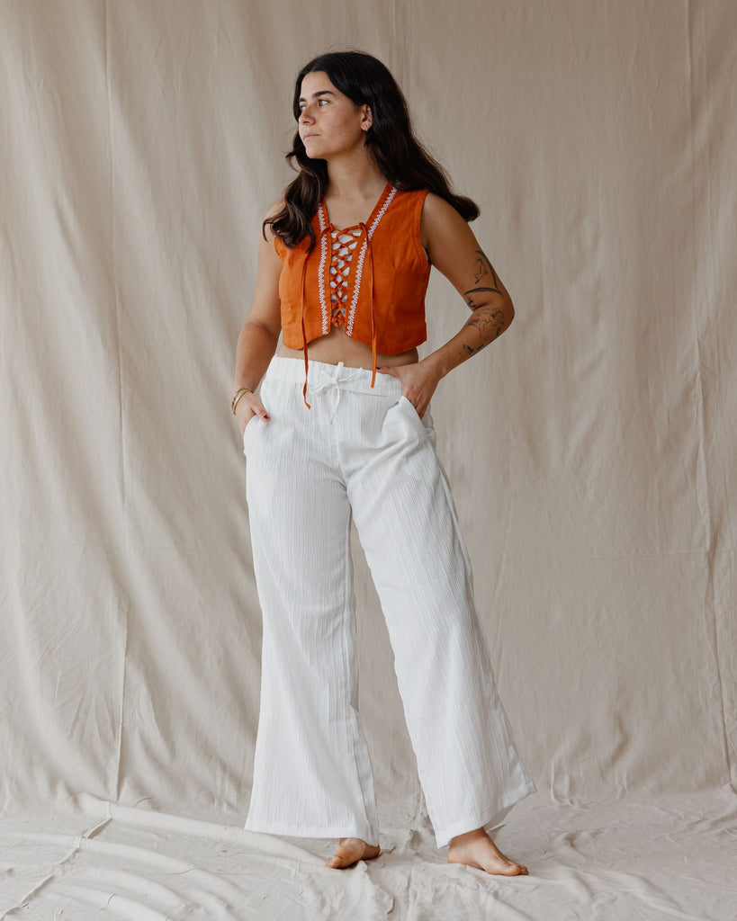 بنطلون قطني ناعم أبيض