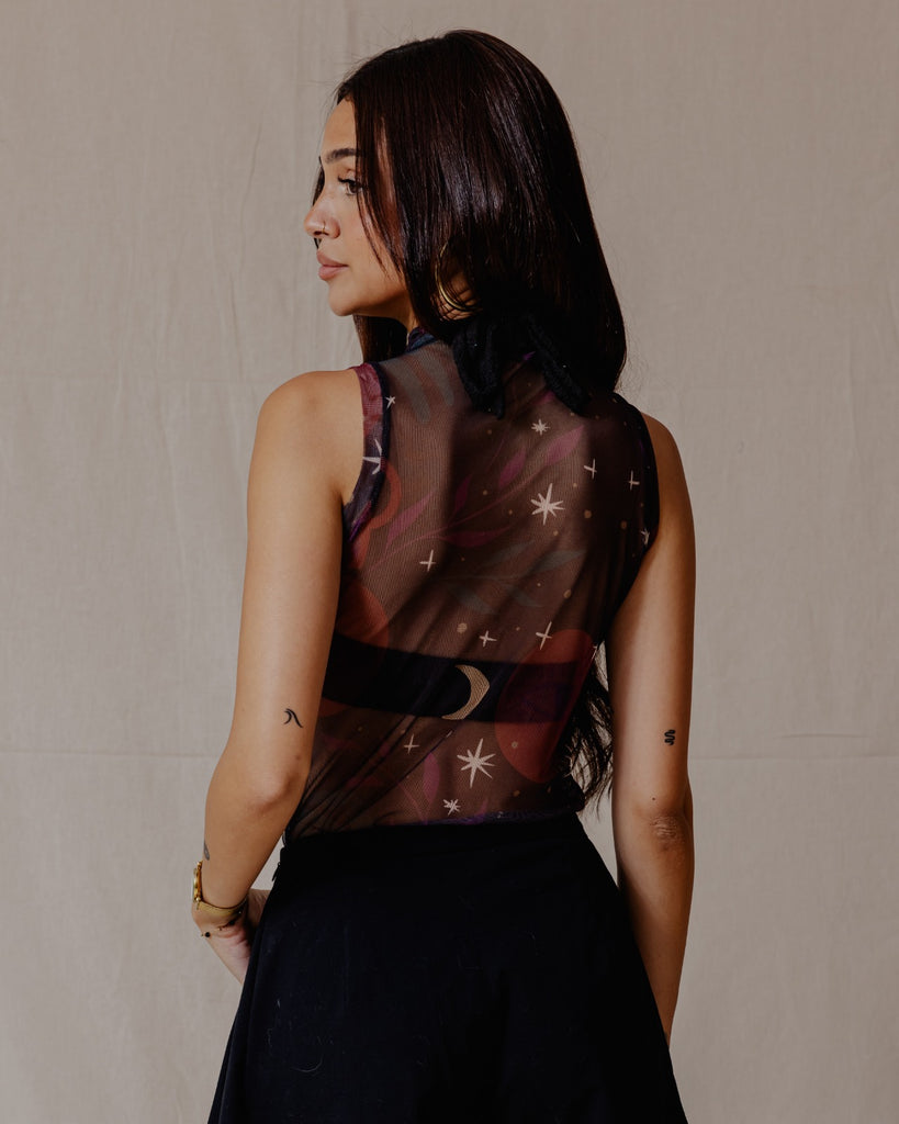 بلوزة شبكية بنقشة الشفق الاستوائي