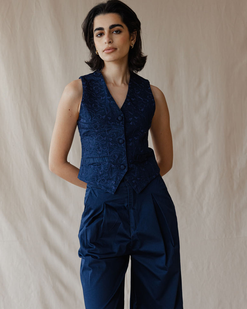 طقم الجبردين هذا، المكون من سترة أنيقة وبنطال مُفصّل، يمنحكِ إطلالة أنيقة وكلاسيكية. يُضفي التطريز الرقيق لمسةً ساحرة، مما يجعله مثاليًا للنهار أو الليل. ارتديهما معًا لإطلالة مميزة، أو امزجيهما معًا لإطلالة كاجوال.