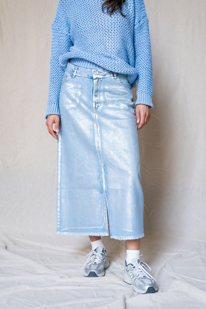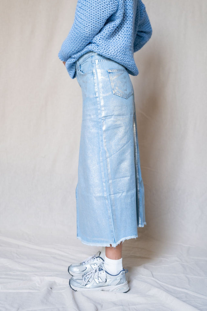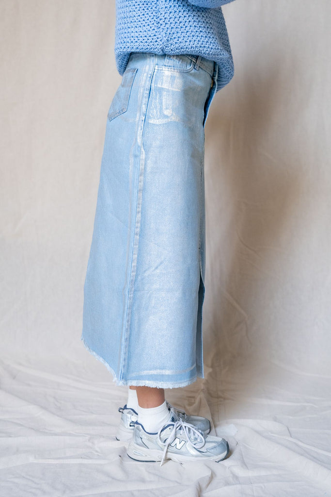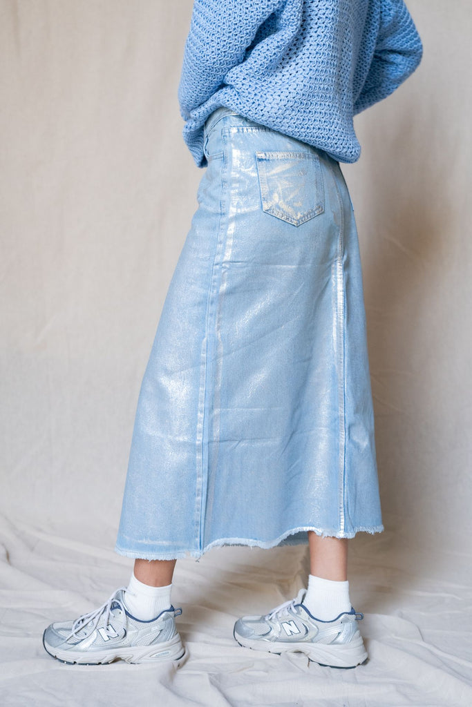 جرؤ على التميز مع تنورتنا الجينز المعدنية، المصممة لإثارة إعجاب الجميع بلمعانها الجذاب وشقها العصري وثقتها التي لا يمكن إنكارها.