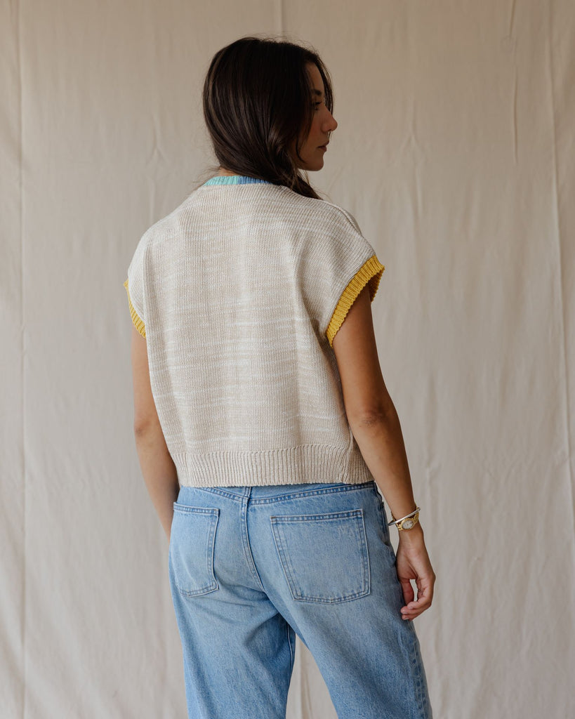 Inspired by traditional motifs, this knitted vest combines warm and earthy colors. Pair it with a simple tee or layer it over a shirt for a look that’s both timeless and contemporary.