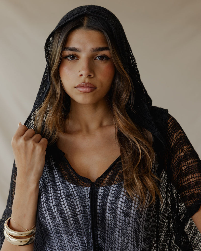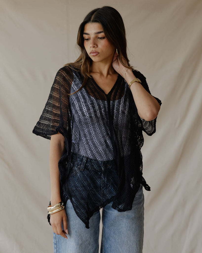 Summer Knit Poncho Black