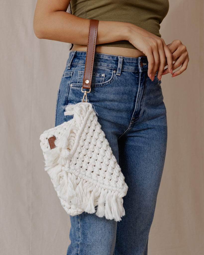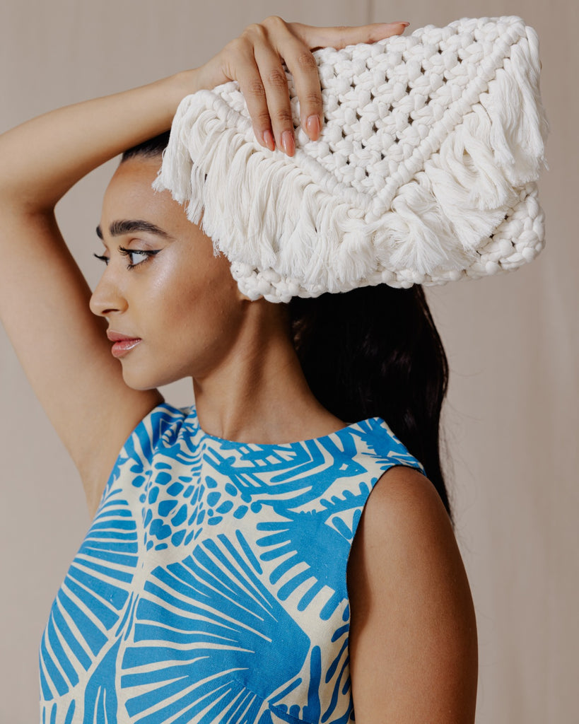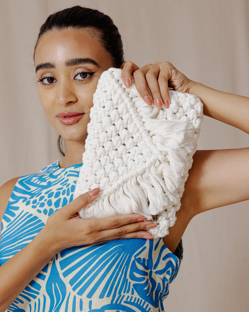Jade Macrame Clutch Off-White