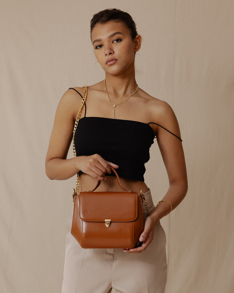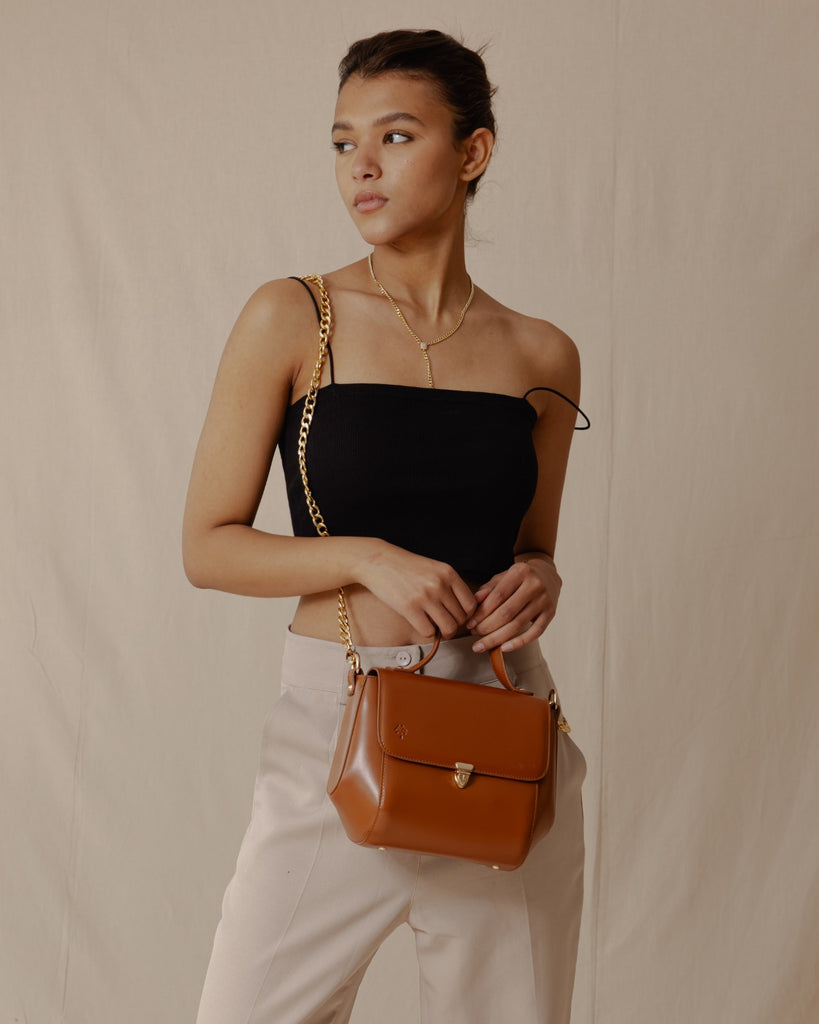 A gold chain on a crossbody like this one will add the perfect amount of edge to your outfit.