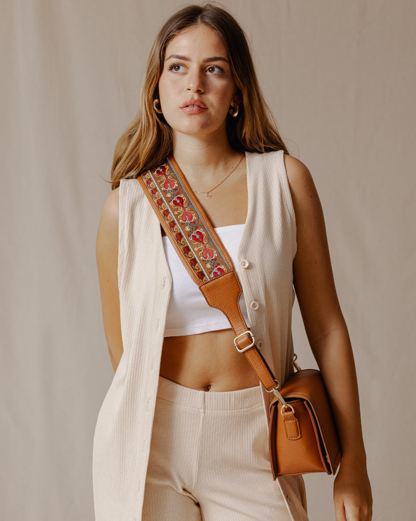 Make every outing an opportunity to shine with this chic bag. The standout embroidered strap is the perfect finishing touch to your look.